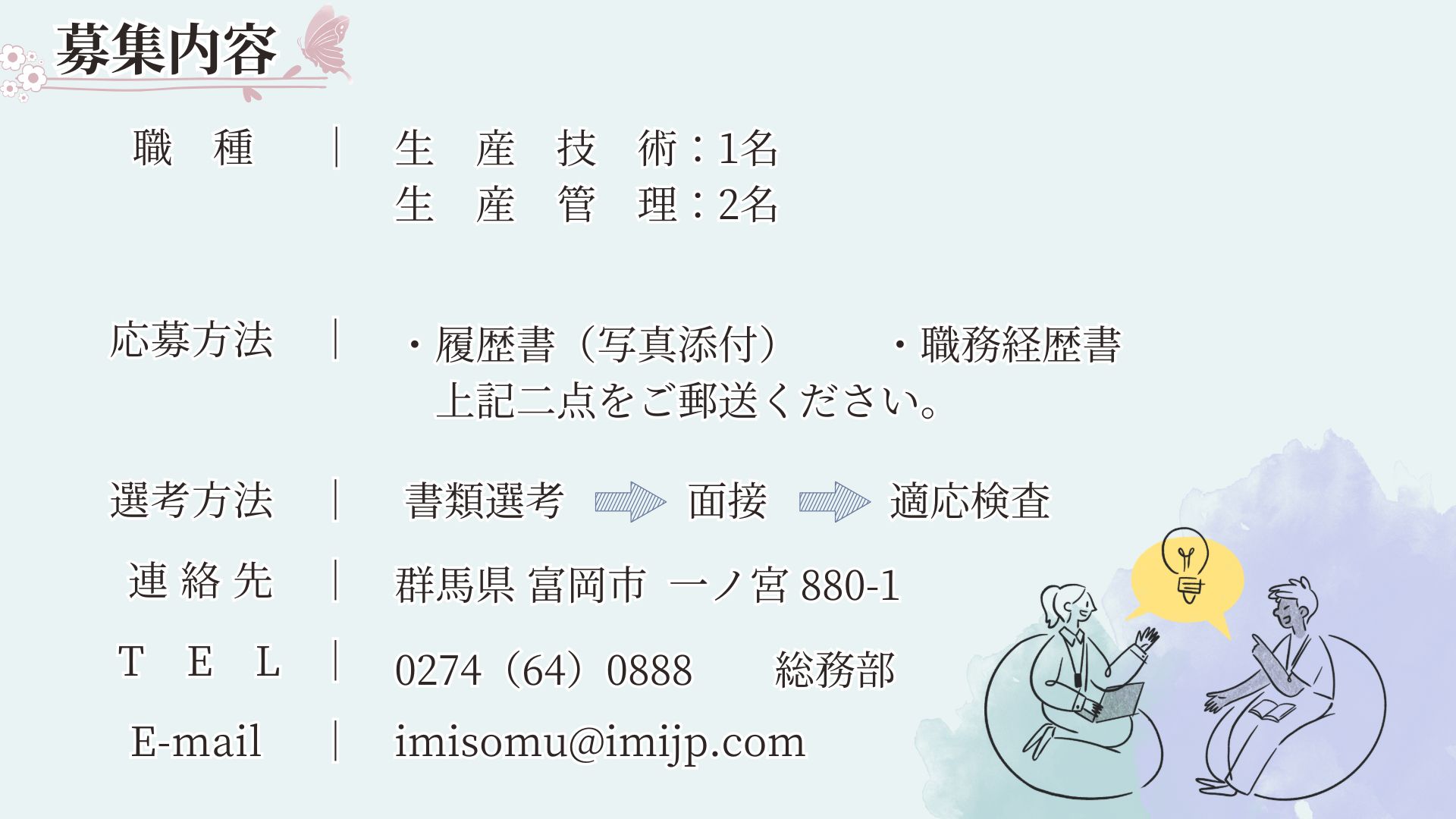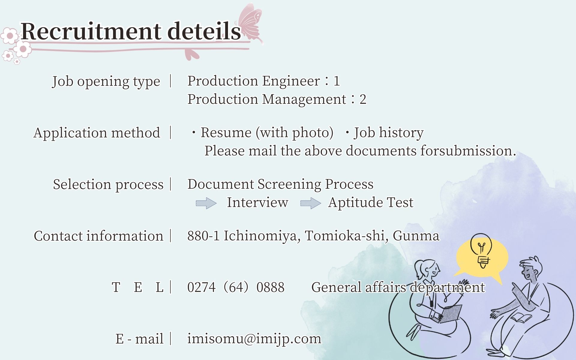 Only products that have passed strict quality inspections can be used by users. IMI, which pursues accuracy through advanced production systems such as CAD/CAM, incorporates various measurement and inspection systems on its production lines to ensure quality.